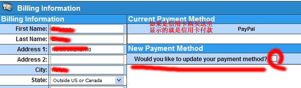 5.然后勾选图中的would you like to uupdate your payment method?就可以打开一个下拉框,在下拉框中勾选paypal支付或者其他支付不能直接被扣款的即可,如图所示